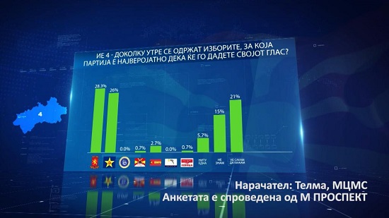 Анкета на Телма: ВМРО-ДПМНЕ со предност од 3,9 отсто пред СДСМ